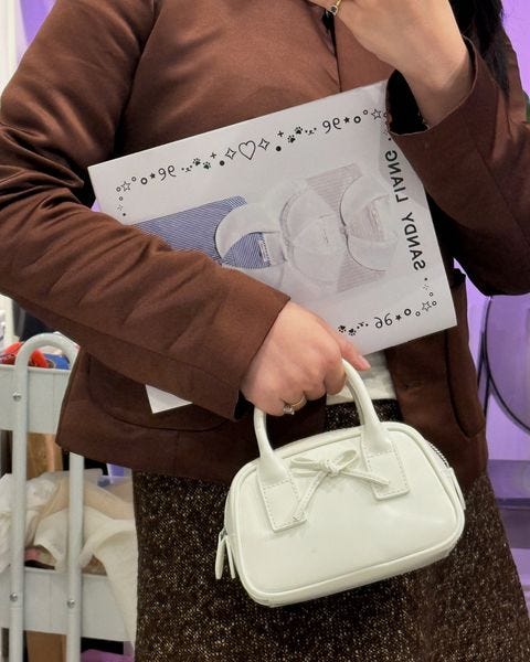 When I opened Instagram Saturday morning I stumbled across a carousel of photos that made my media heart ever so happy: Sandy Liang giving a sneak peak of her catalogue. Like Anton Ego at the end of Ratatouille, I dolly-shot all the way back to my childhood self circling in Limited Too.